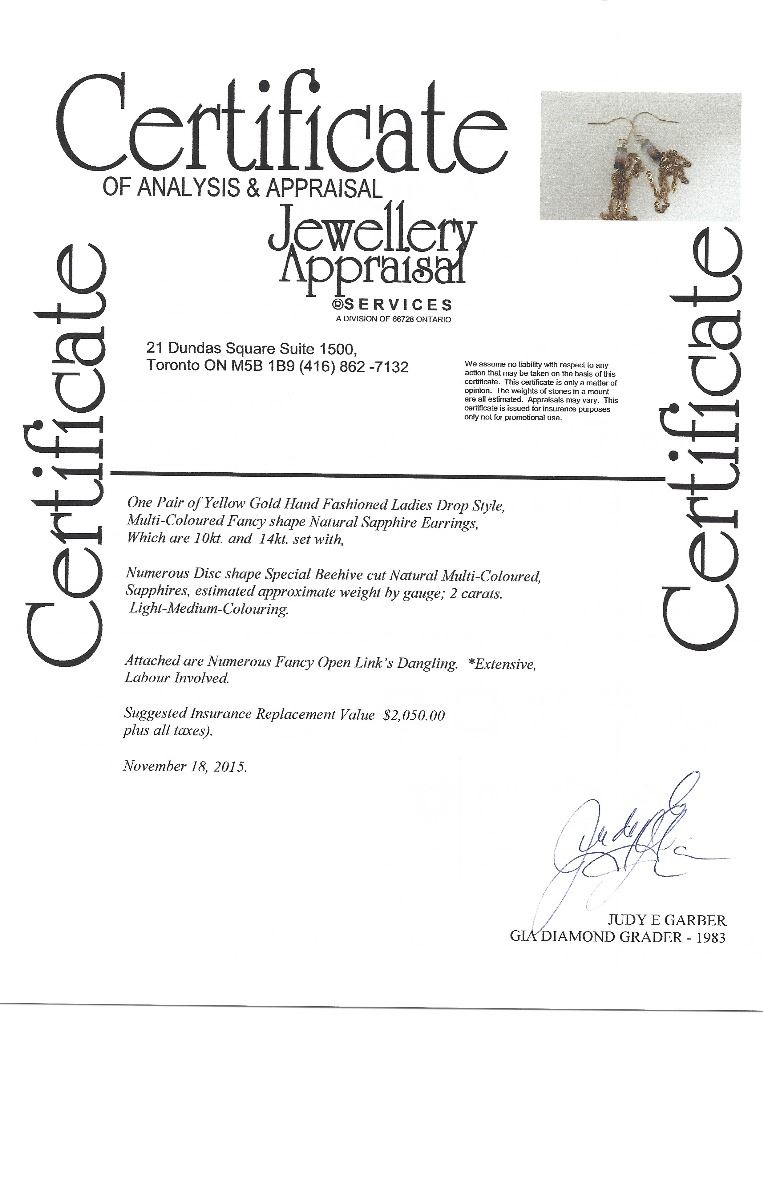 SAPPHIRE DROP EARRINGS. W/ COA- SUGGESTED REPLACEMENT VALUE $2,050.00
