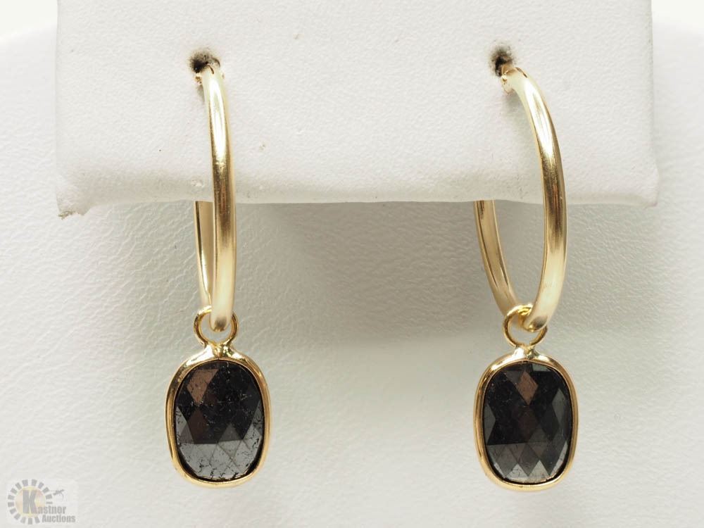 14K YELLOW GOLD BLACK DIAMOND(1.90CT) HOOP EARRINGS. W/ COA - SUGGESTED REPLACEMENT VALUE $1,900.00