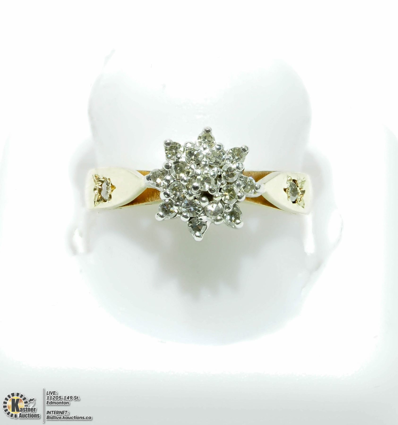 12 - MM60 - 14K YELLOW-WHITE GOLD DIAMOND (0.35CT) STAR CLUSTER STYLE RING SIZE 6.25, SUGGESTED REPLACEMENT VALUE $1950.00