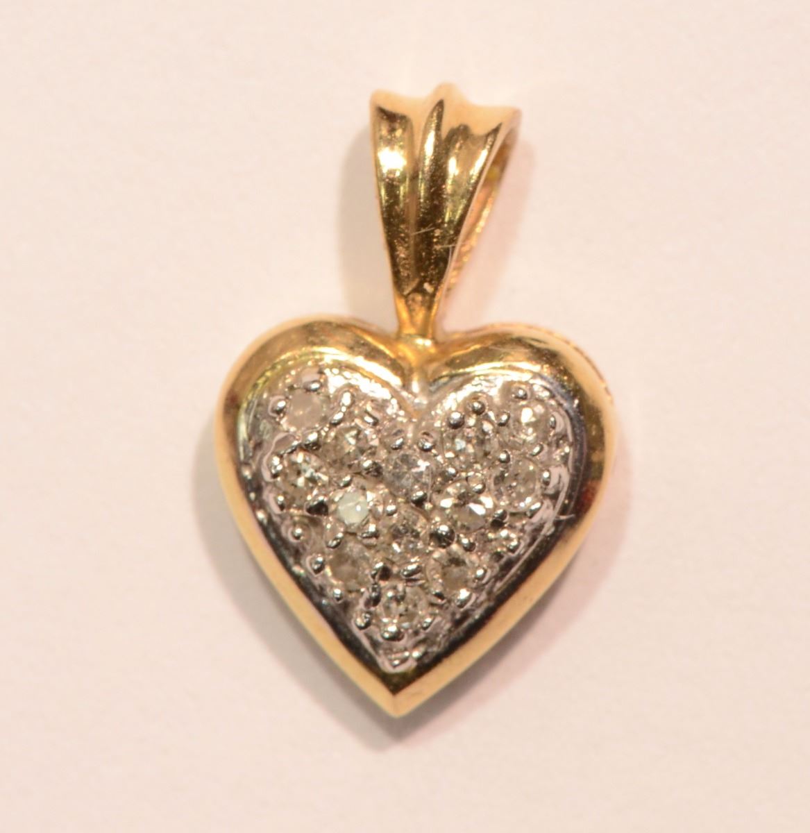 YELLOW GOLD HEART SHAPED PENDANT WITH 13 DIAMONDS (0.20CT) IN RHODIUM PLATED PAVE SETTING