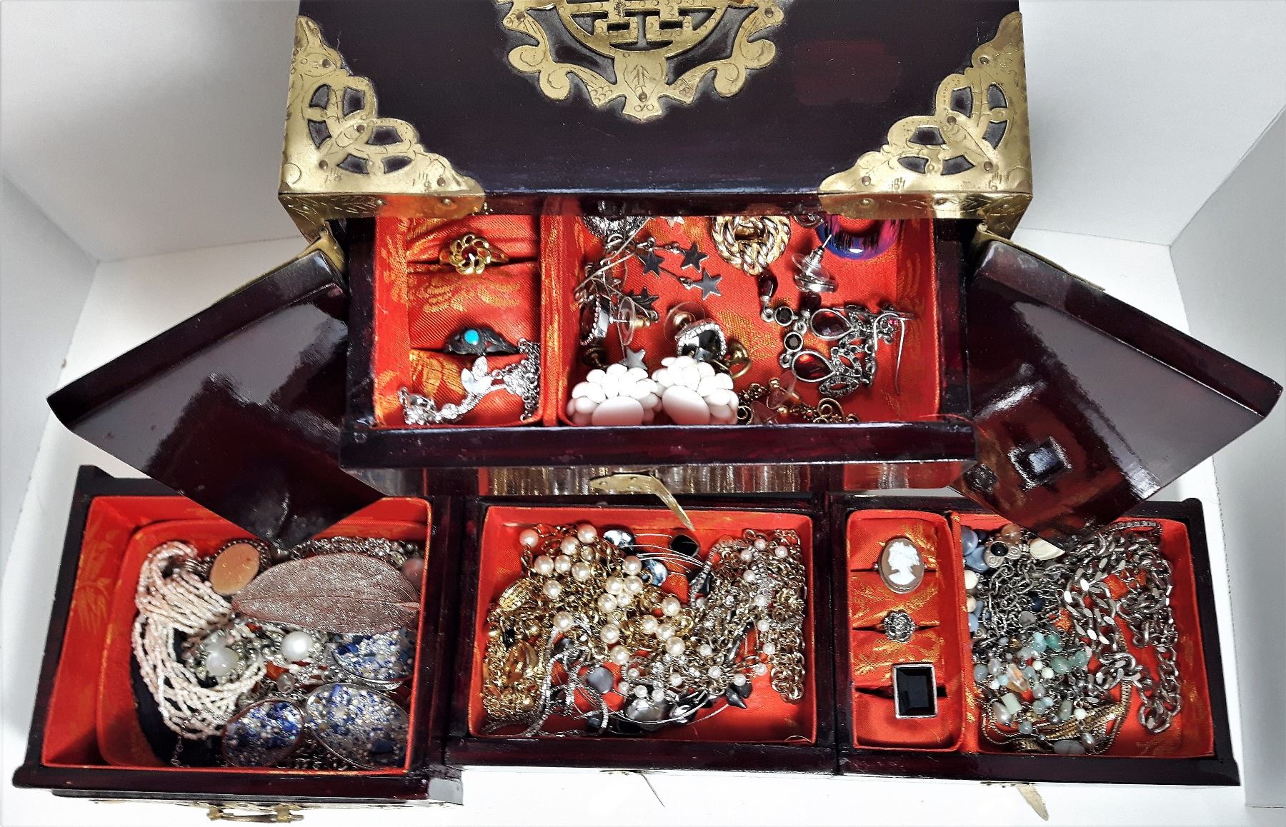 CONTENTS INCLUDING RINGS, EARRINGS, NECKLACES, & PENDANTS. JEWELRY