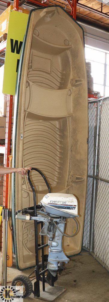 12' BOAT WITH EVENRUDE MOTOR AND 2 WHEEL DOLLY