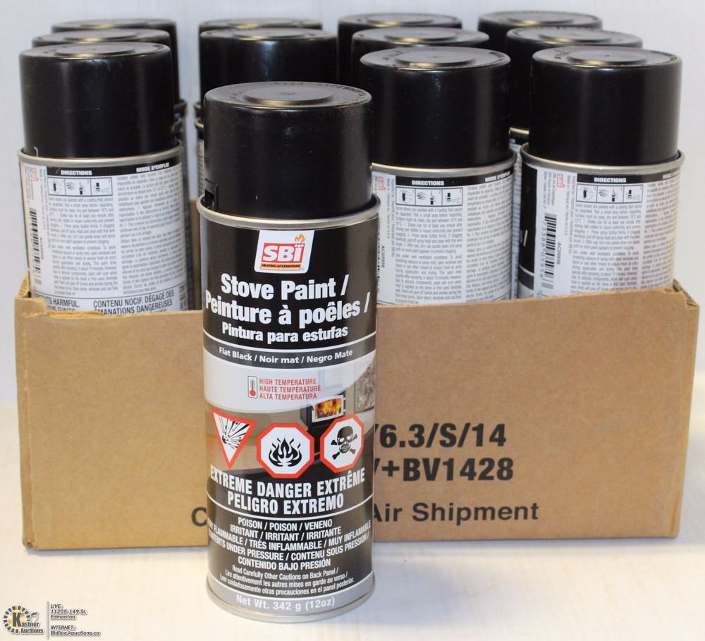 12 CANS OF FLAT BLACK HIGH TEMP PAINT