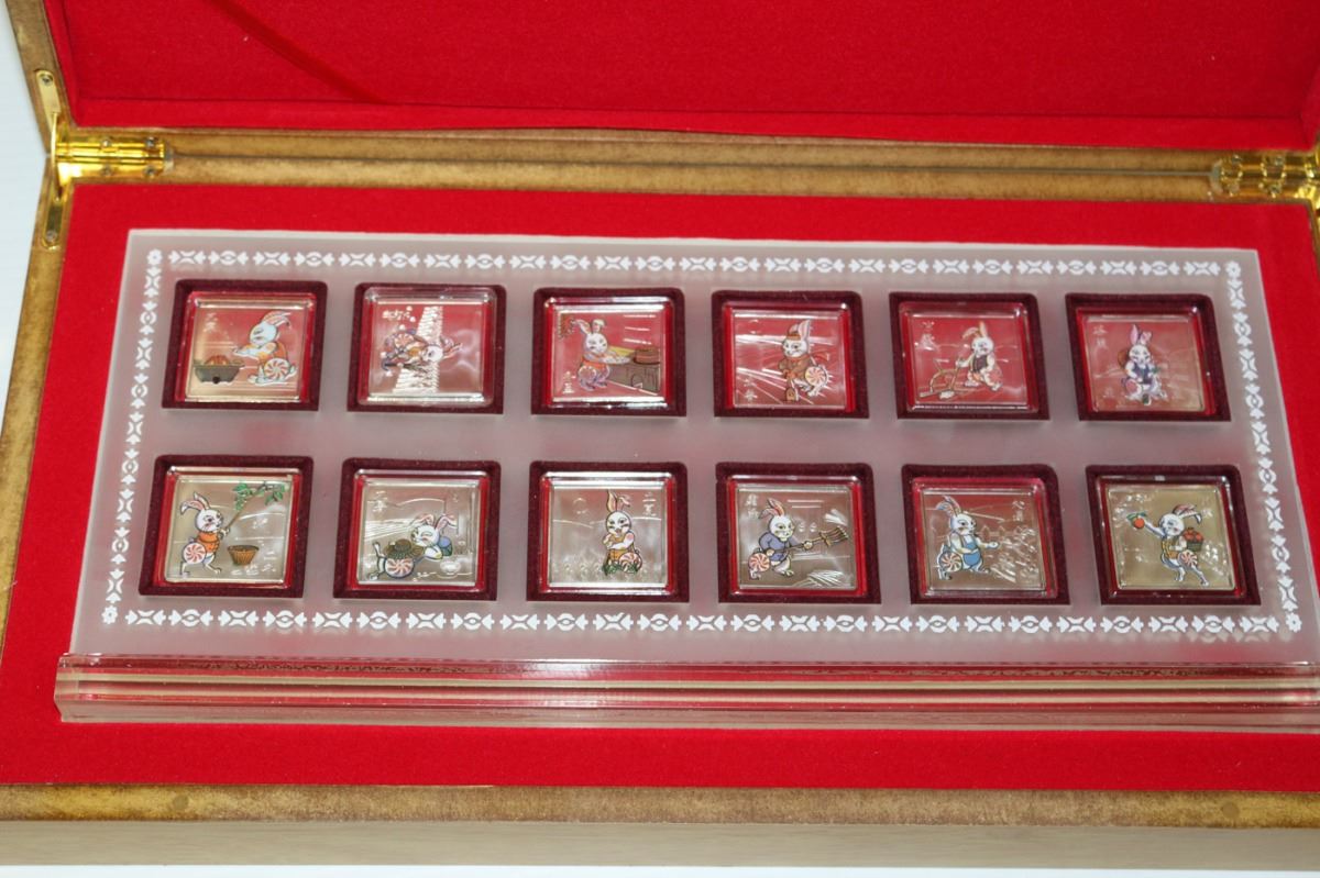 12 COIN YEAR OF THE RABBIT COIN SET IN WOOD CASE