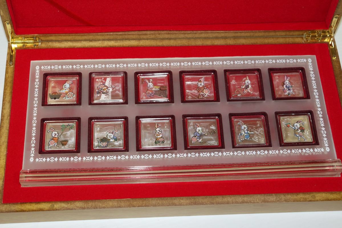 12 COIN YEAR OF THE RABBIT COIN SET IN WOOD CASE