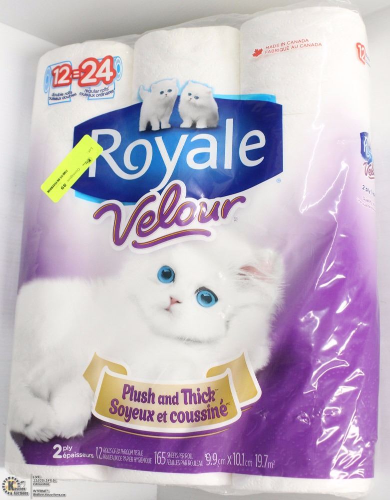 12 DOUBLE ROLLS ROYAL VELOUR TOILET PAPER