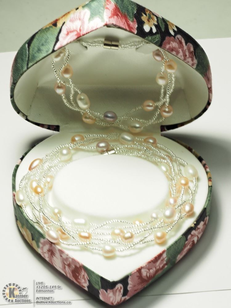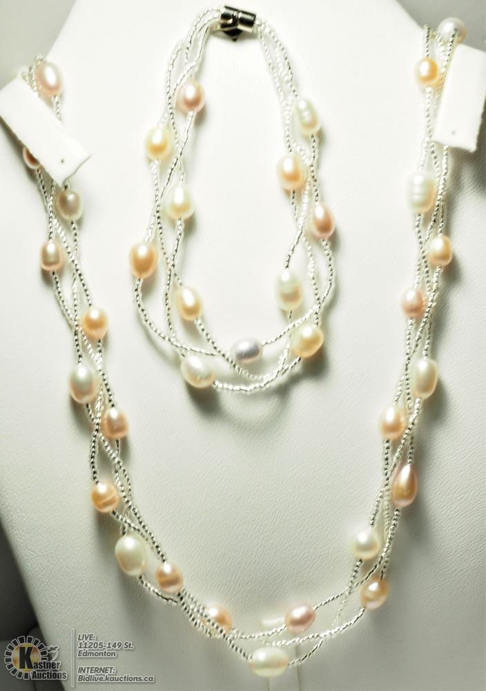 12-NT123- FRESHWATER PEARL NECKLACE AND BRACELET SET. JEWELLERY