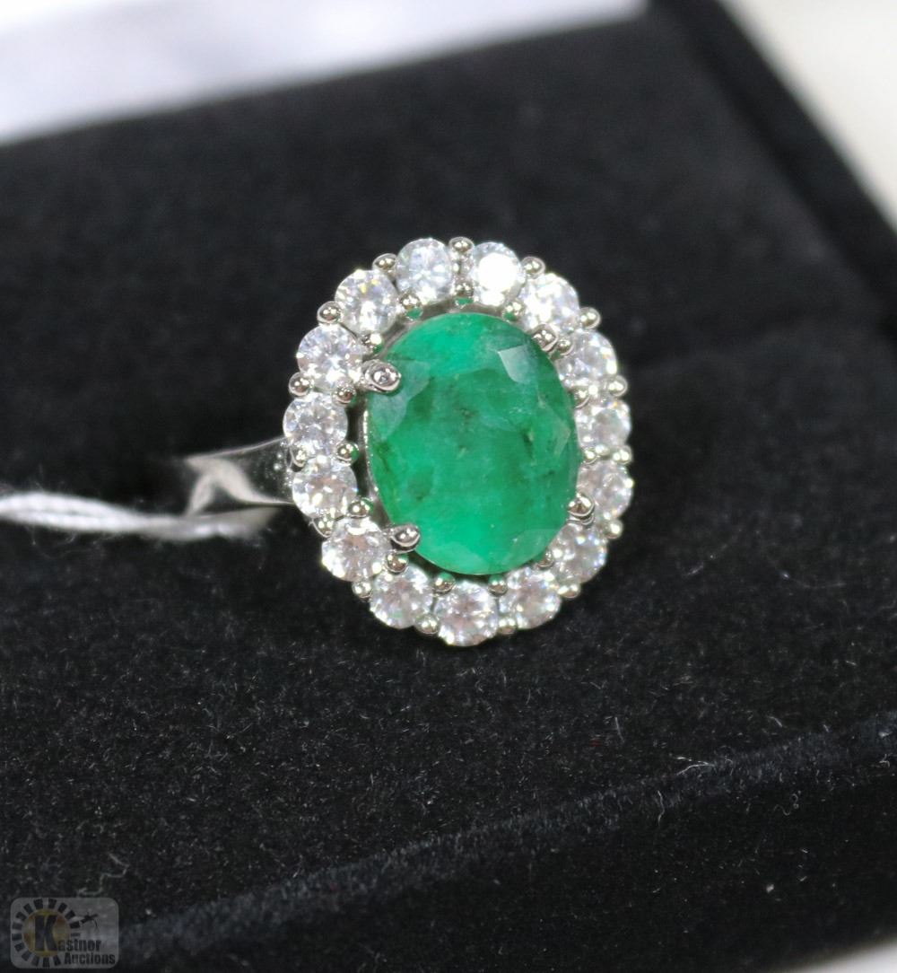 #12-GREEN EMERALD &CZ.925 SOLID SILVER RING