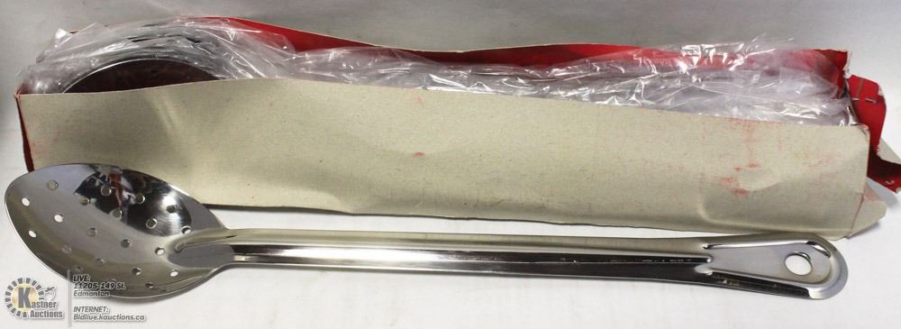 12 NEW 15" STAINLESS PERFORATED SPOONS