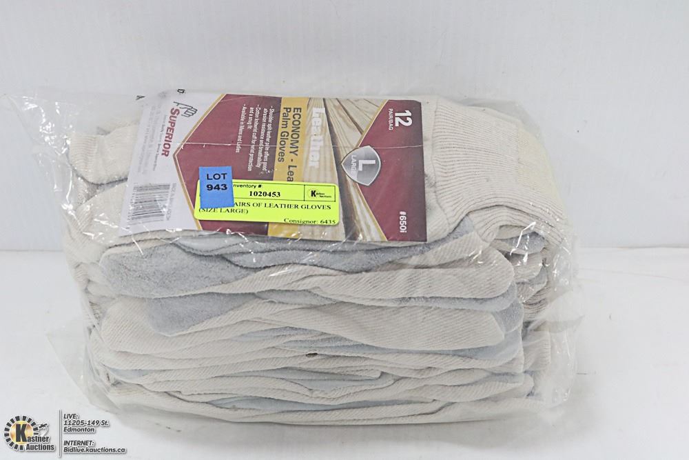 12 NEW PAIRS OF LEATHER GLOVES (SIZE LARGE)