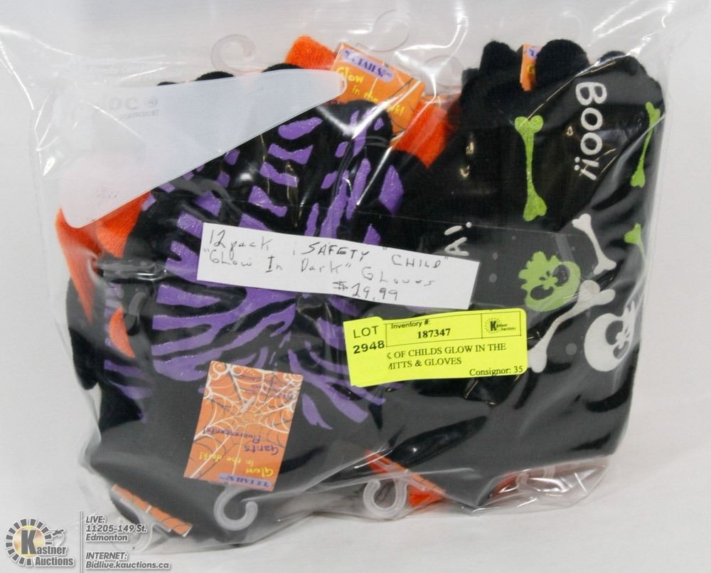 12 PACK OF CHILDS GLOW IN THE DARK MITTS & GLOVES