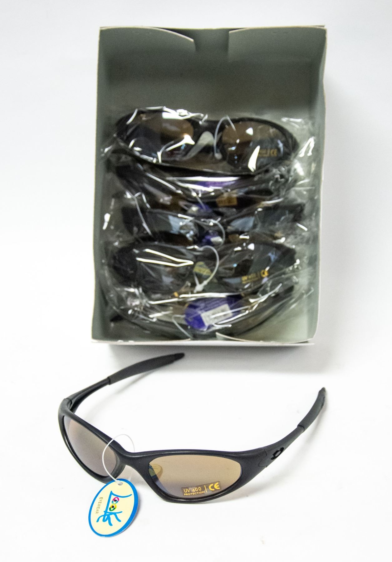 12 PAIRS BLACK WITH BROWN LENS SPORT SUNGLASSES