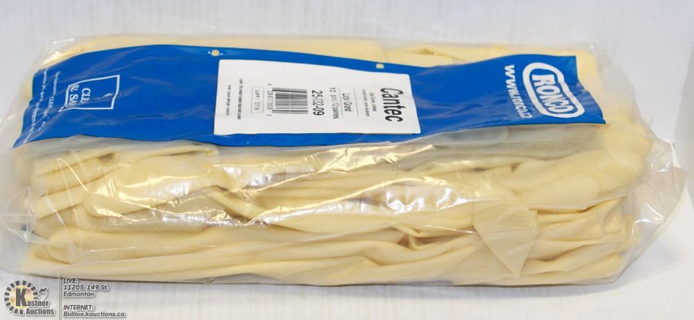 12 PAIRS OF RONCO CANTEC SIZE LARGE LATEX GLOVES