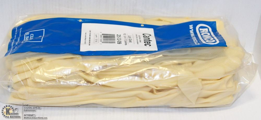 12 PAIRS OF RONCO CANTEC SIZE LARGE LATEX GLOVES