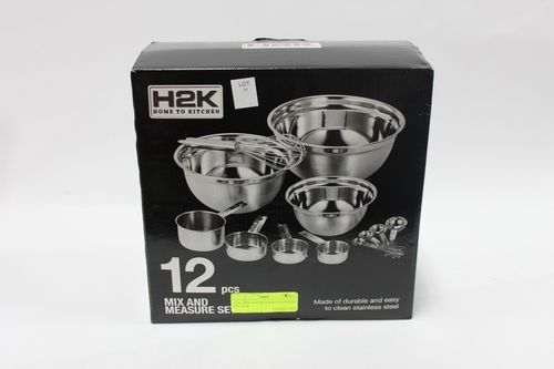 12 PC MIX AND MEASURE STAINLESS SET, NEW