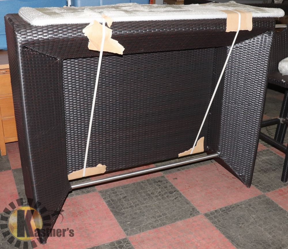 12) RATTAN STYLE GLASS TOP & WOOD BAR.