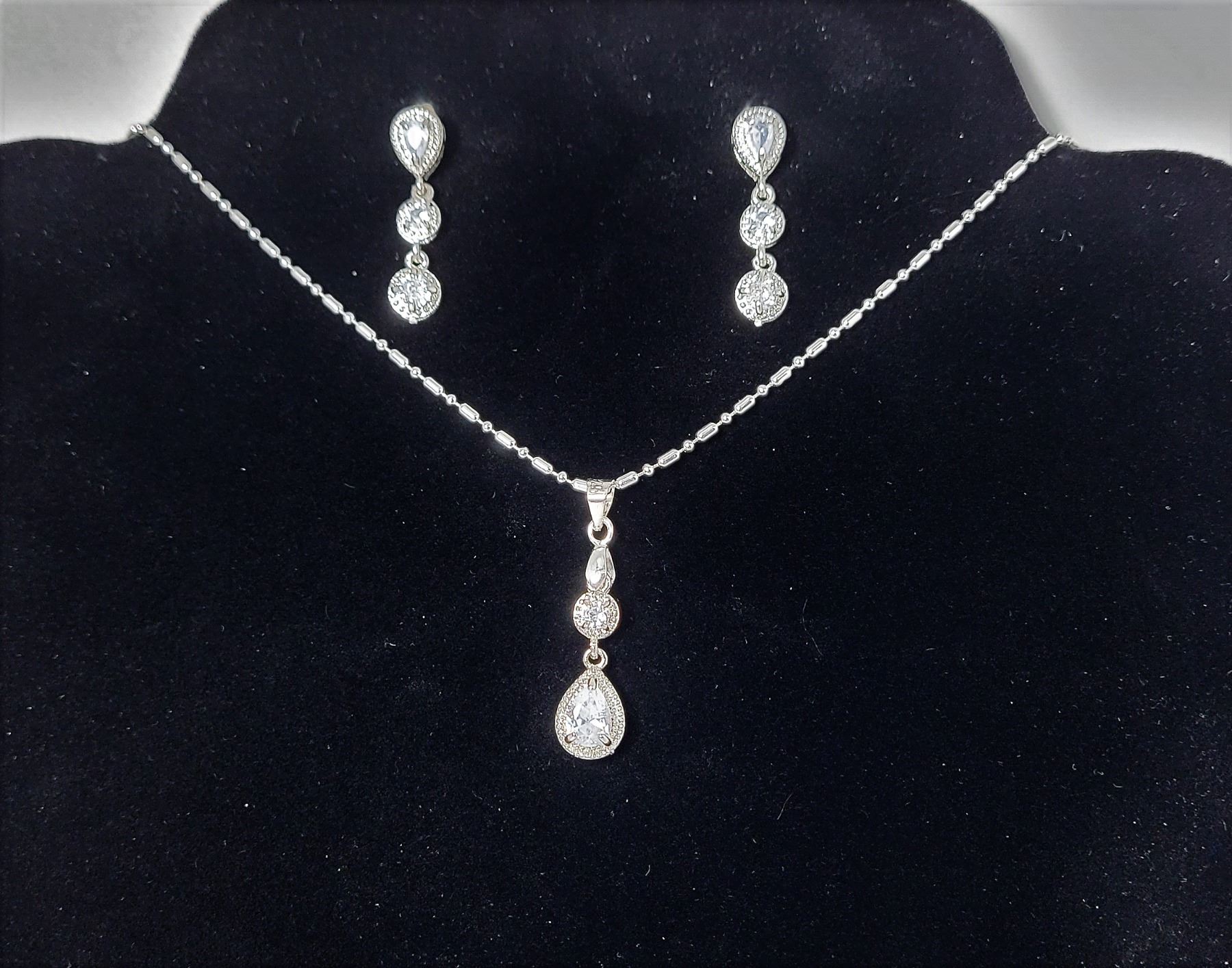 ON 20" BAR AND BEAD CHAIN AND MATCHING DROP EARRINGS ON STUDS.