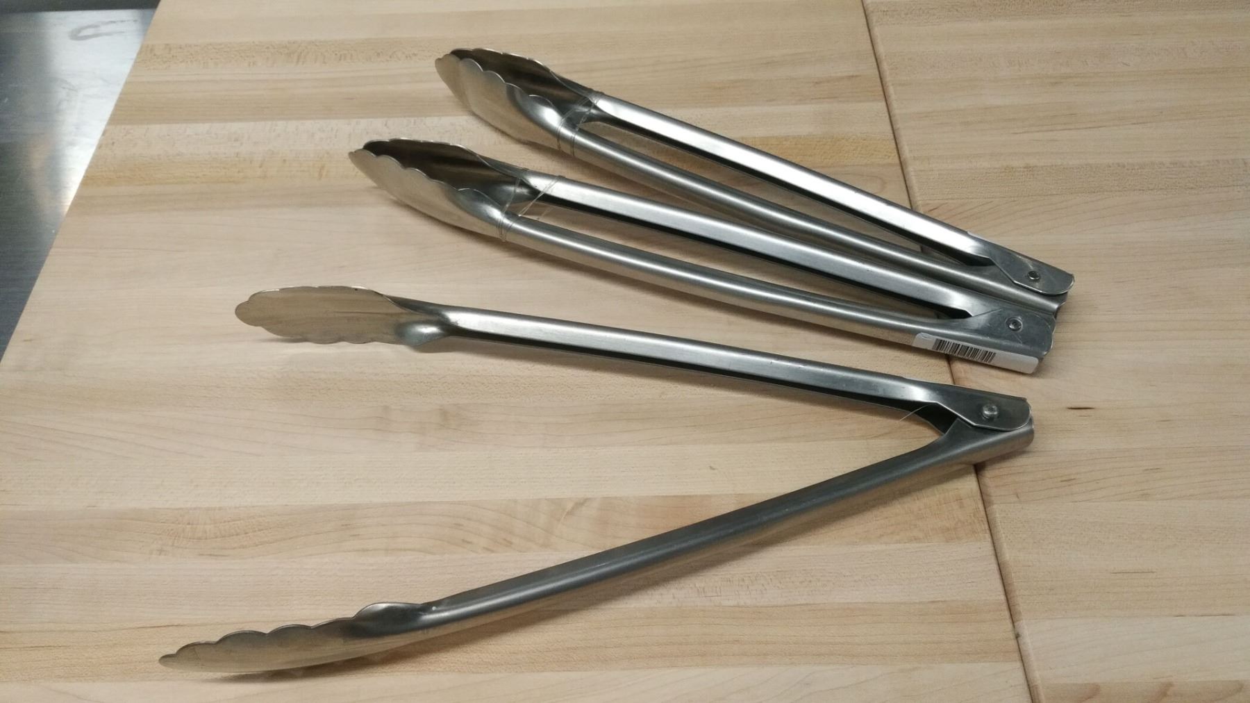 12  STAINLESS EXTRA HEAVY DUTY TONGS - LOT OF 3