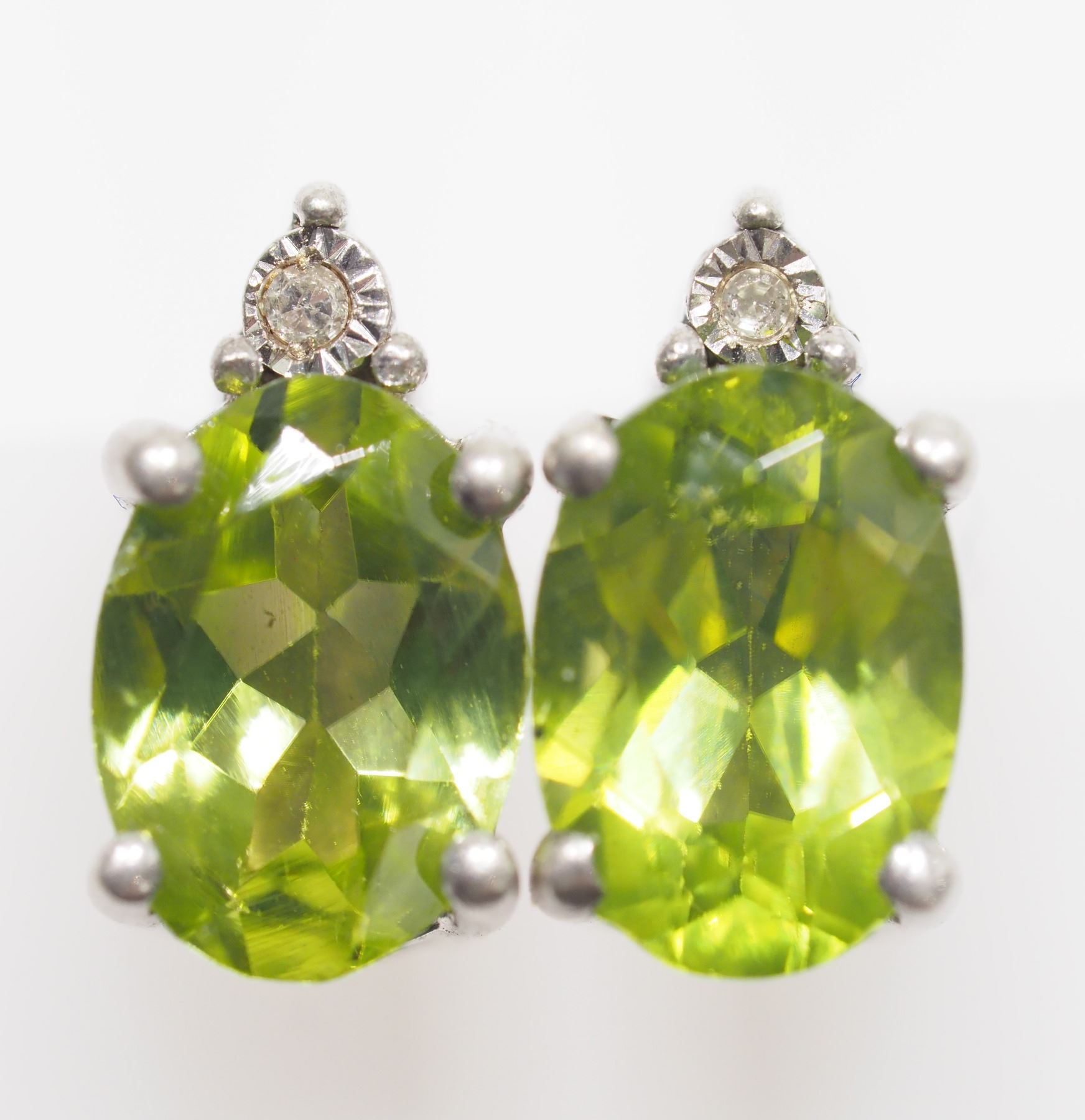 12) STERLING SILVER PERIDOT DIAMOND EARRINGS