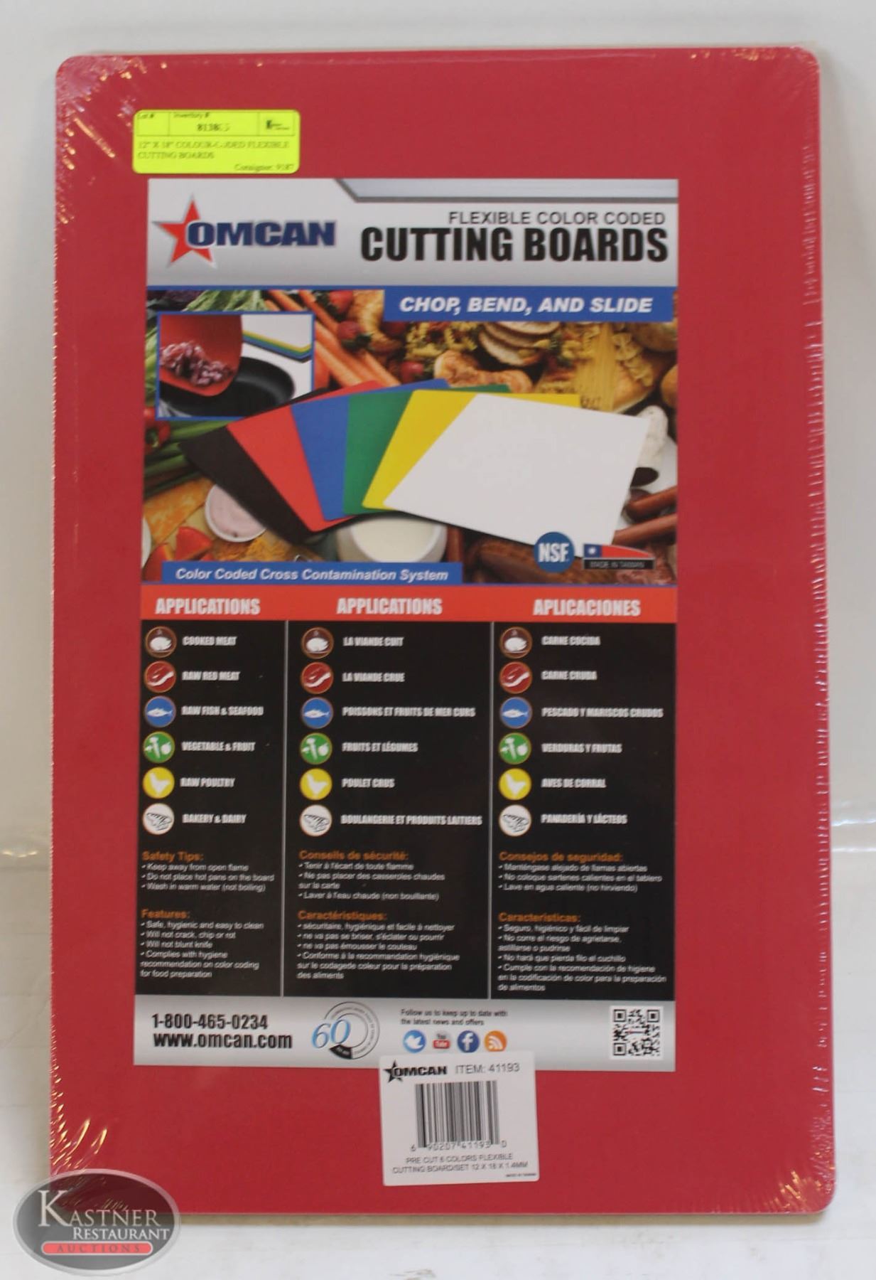 K98 NEW 12" X 18" SET OF 6 COLOUR-CODED FLEXIBLE CUTTING BOARDS, OMCAN 41193