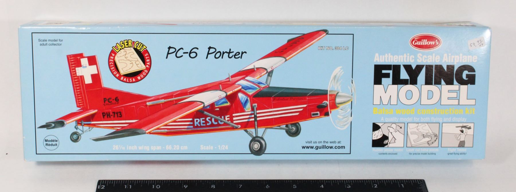 Opened Box Guillow's Model Kits Guillow's Kit No. 304 PC-6 Porter Model Made in USA, Box Made in China