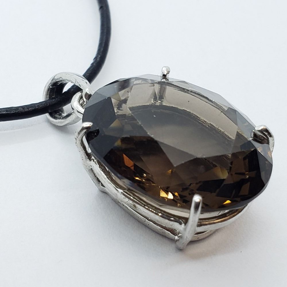 123 - JM37 - STERLING SILVER SMOKEY QUARTZ (APPROX 25CT) PENDANT (6.65G). JEWELRY
