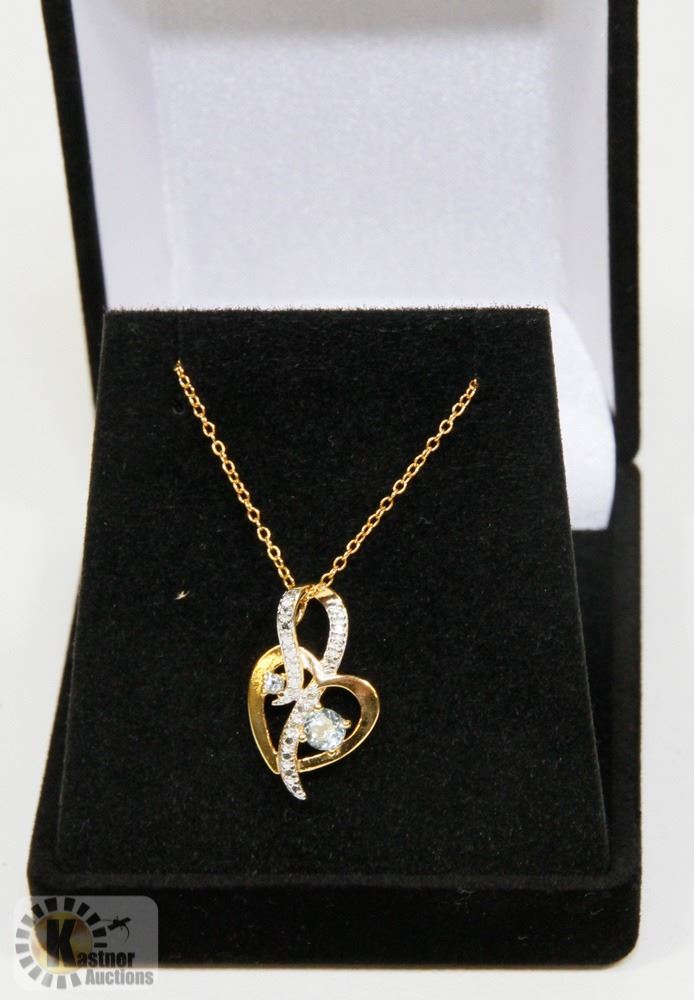 #124- NATURAL BLUE TOPAZ & CZ PENDANT NECKLACE