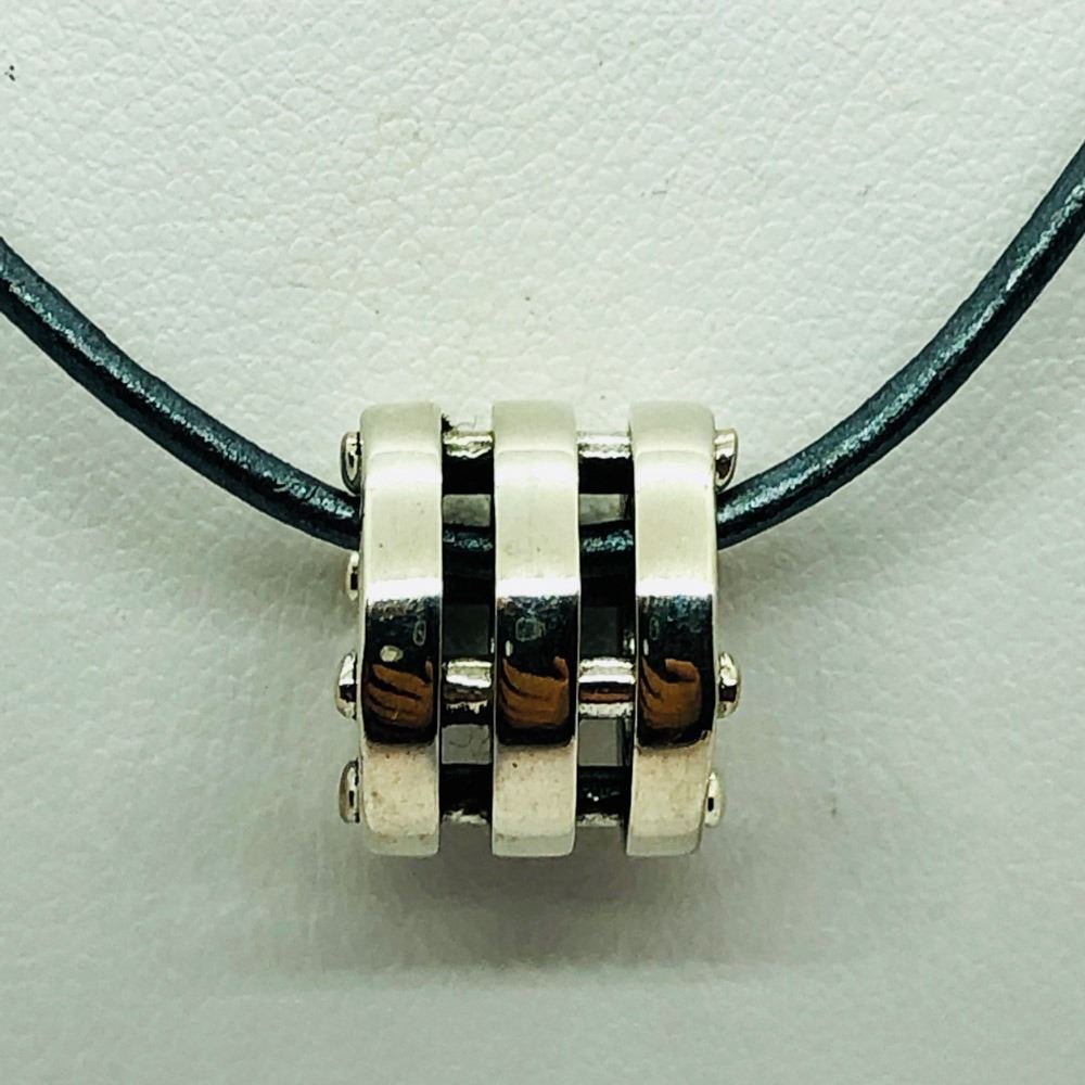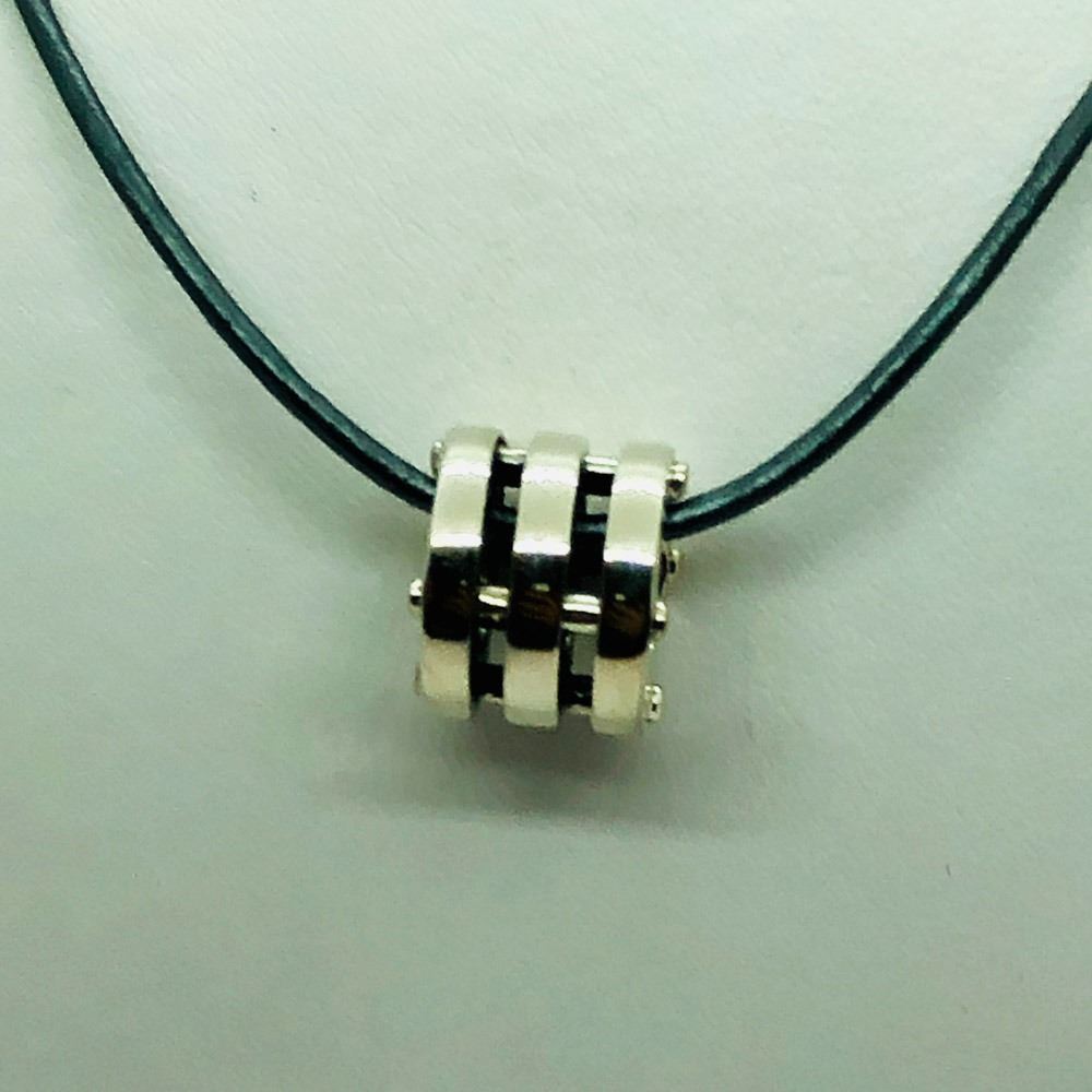 128 - JT60 - STERLING SILVER BEAD WITH CORD NECKLACE. JEWELRY
