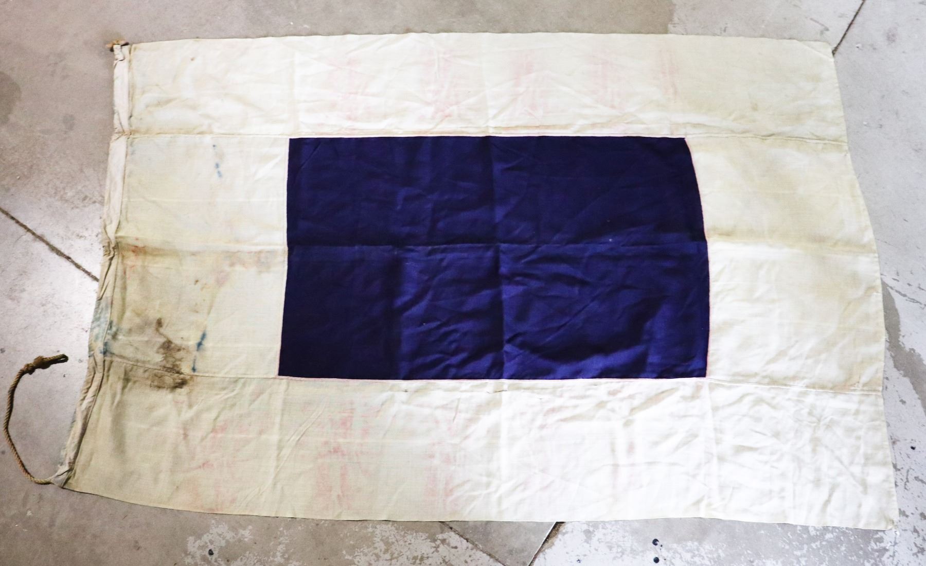 69X36 INCHES IN SIZE POSSIBLY WORLD WAR TWO ERA ALLIED FORCES FLAG CLOTH STITCHED WHITE AND BLUE