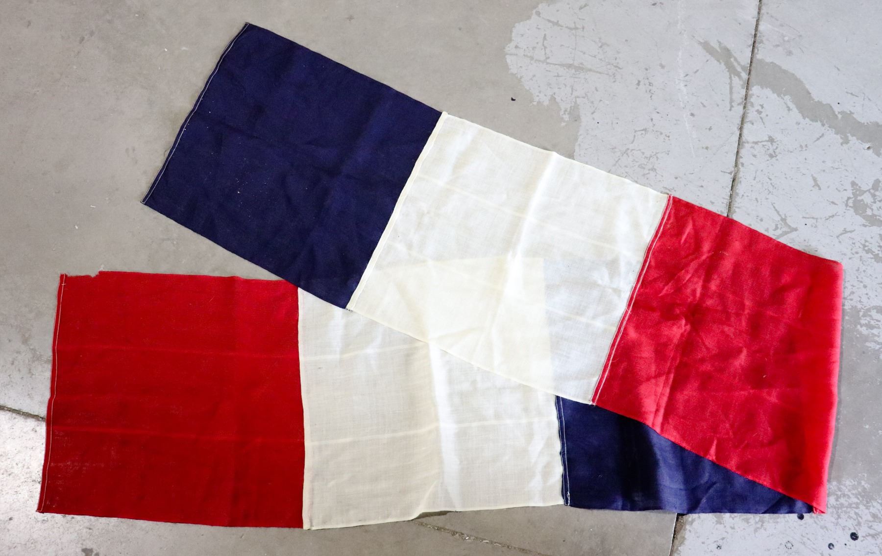 108 X17.5 INCHES IN SIZE POSSIBLY MILITARY ALLIED FORCES FLAG CLOTH STITCHED RED WHITE AND BLUE