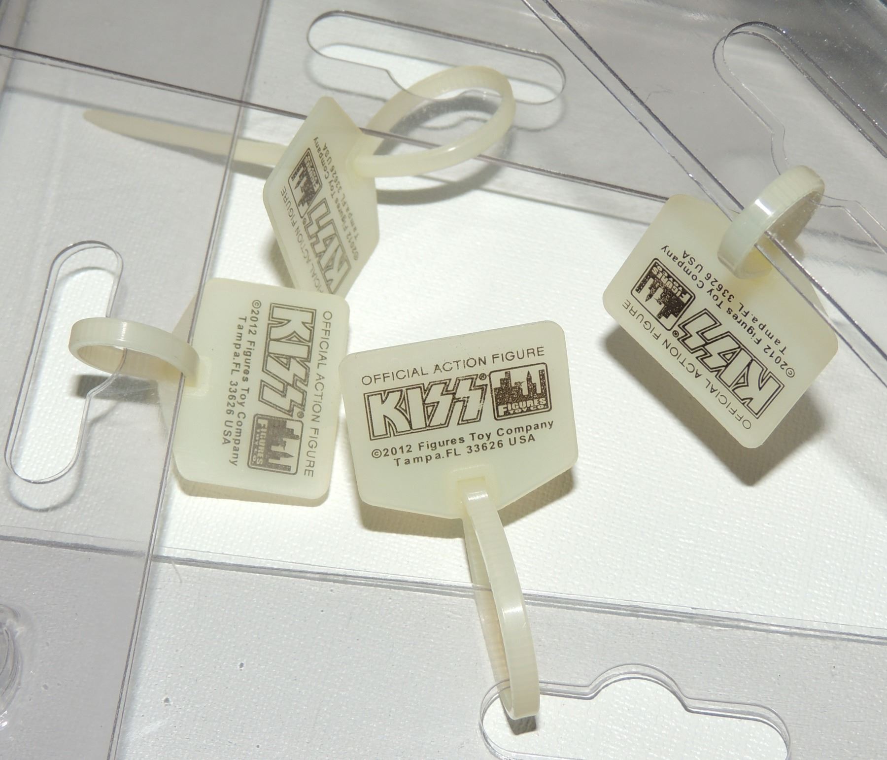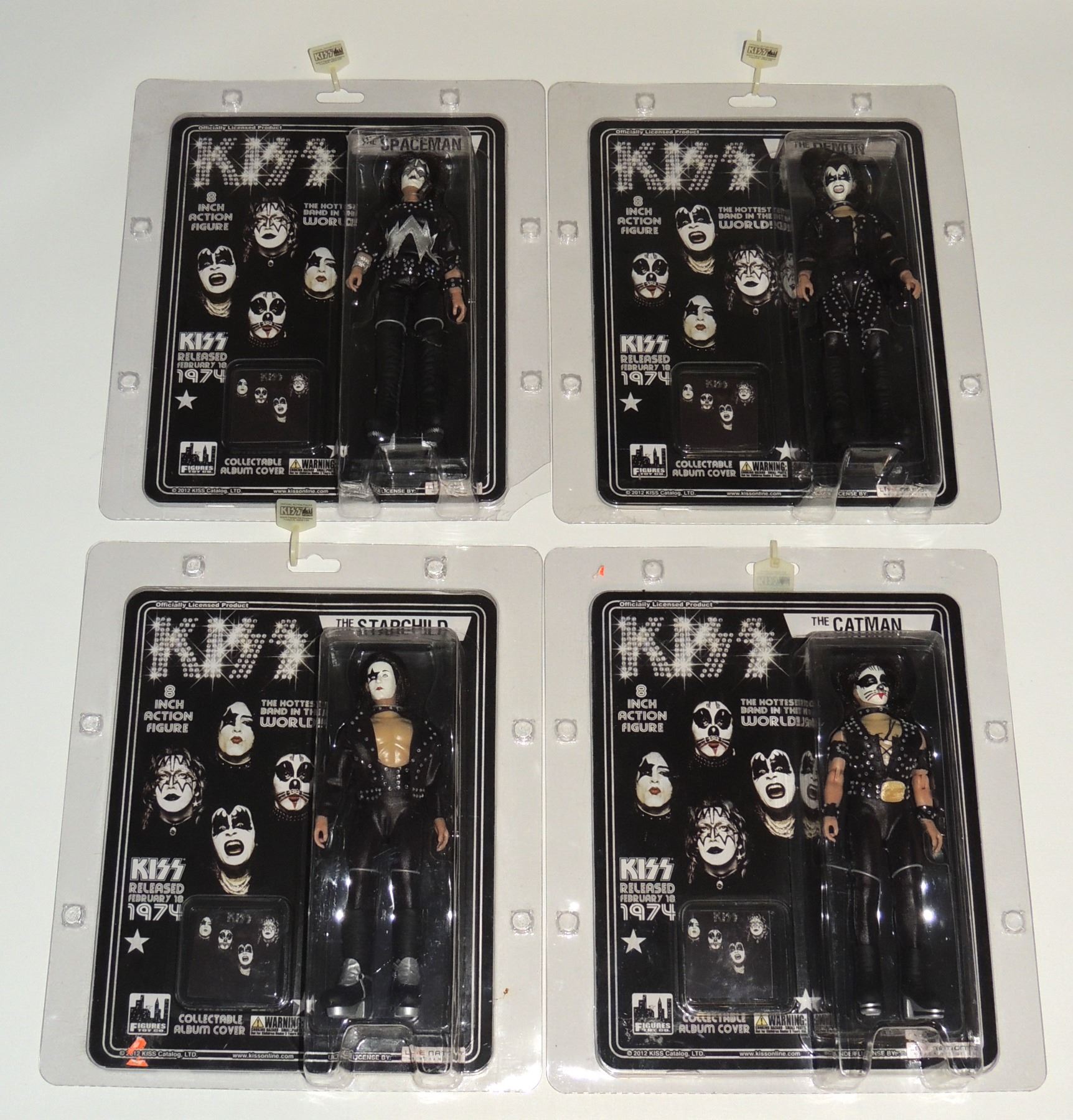COMPLETE SET 8 INCH ACTION FIGURE SET IN PACKAGES WITH KISS TAGS, KISS FIRST 1974 ALBUM SET