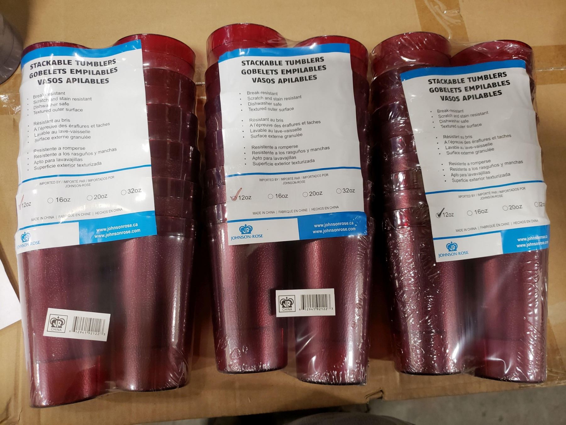 K267 - NEW 12OZ RED PLASTIC TUMBLERS - LOT OF 36