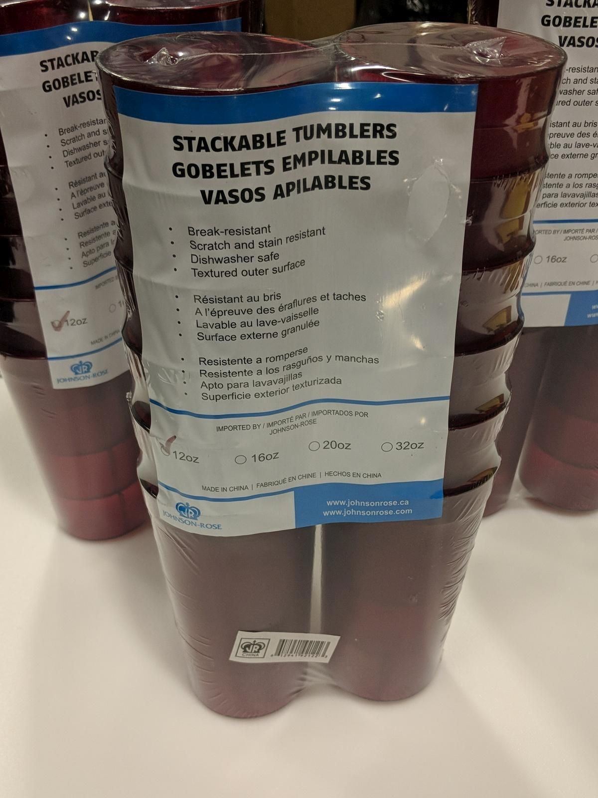 K534-J513 NEW 12OZ RED PLASTIC TUMBLERS - LOT OF 36