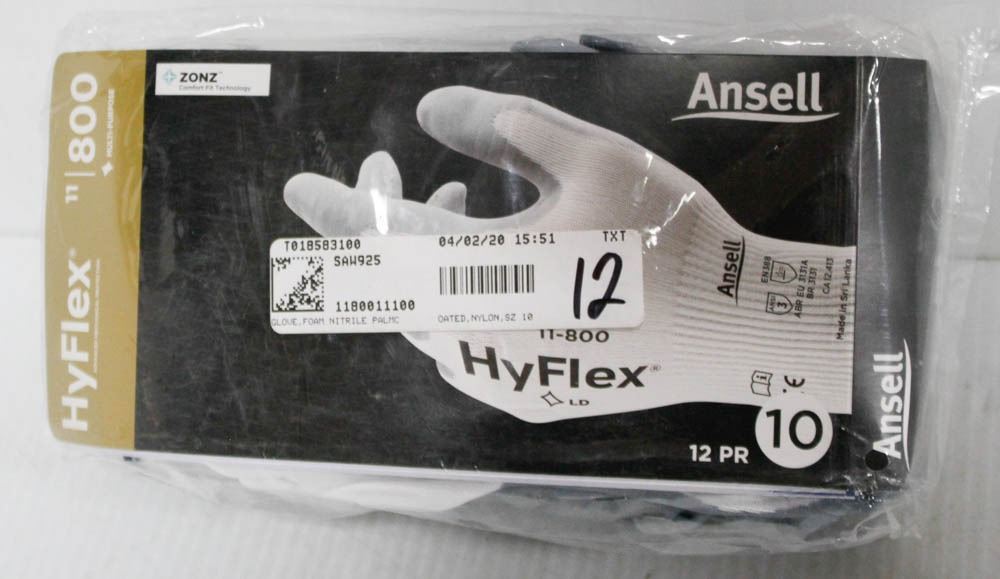 12PK OF ANSELL HYFLEX 800 FOAM NITRILE PALM COATED