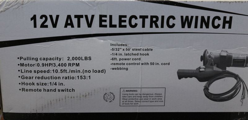 12VOLT ATV-2000LB ELECTRIC WINCH