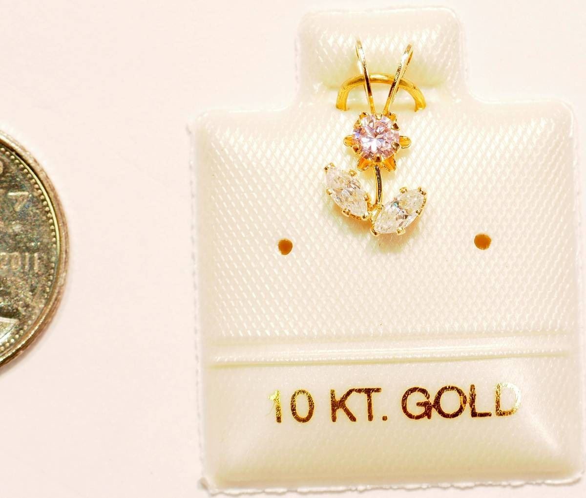 #13-10KT GOLD CUBIC ZIRCONIA FLOWER PENDANT