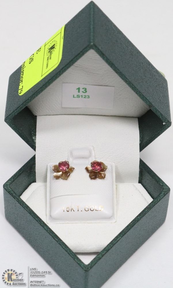 10KT GOLD TOURMALINE MOTHER OF PEARL EARRINGS - 63-LS123. JEWELLERY