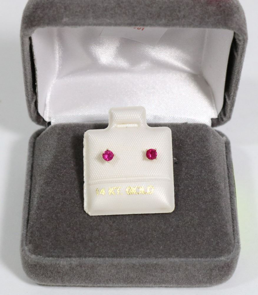 113 - NV01 - 14K YELLOW GOLD RUBY (JULY BIRTHSTONE)(0.25CTS) EARRINGS, MADE IN CANADA. JEWELRY