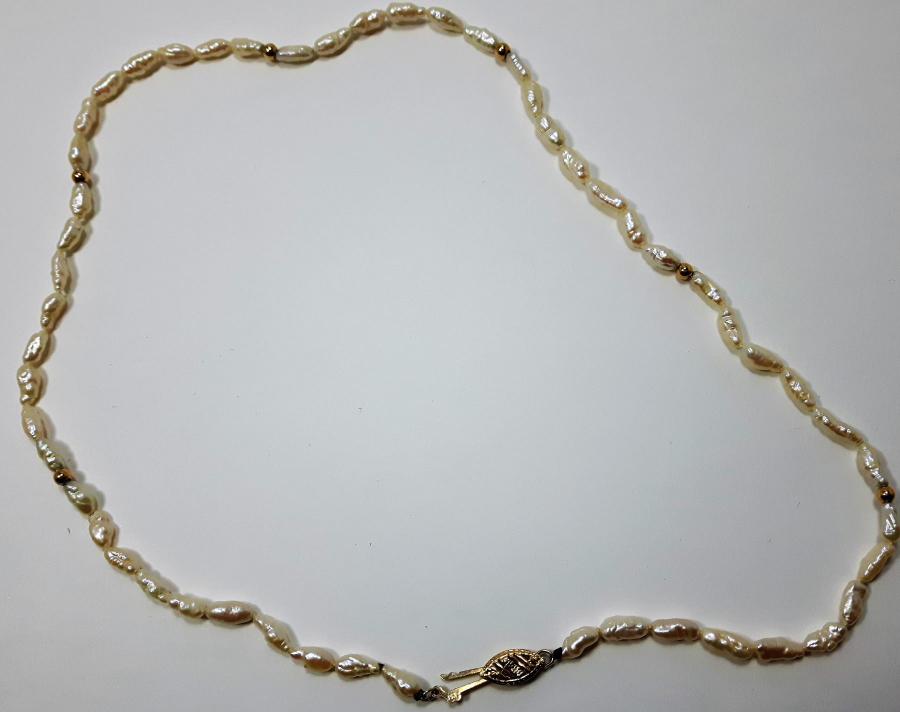 NECKLACE WITH 14KT GOLD CLASP & GOLD STATIONS. JEWELRY
