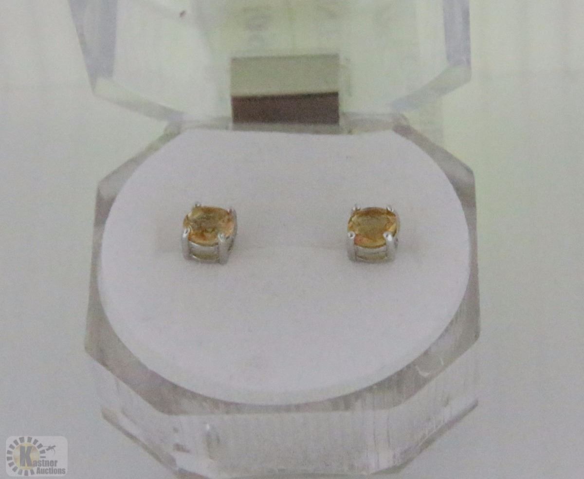 #13)NATURAL CITRINE ROUND .925 SILVER EARRINGS