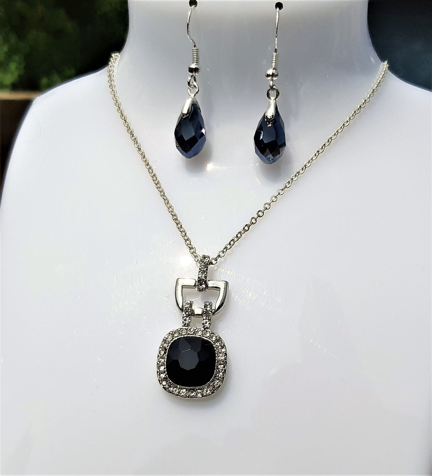 CRYSTAL PENDANT ON 20" CHAIN WITH COORDINATING SWAROVSKI CRYSTAL DROP EARRINGS ON 925 STAMPED SILVER FISHHOOK WIRES. JEWELLERY