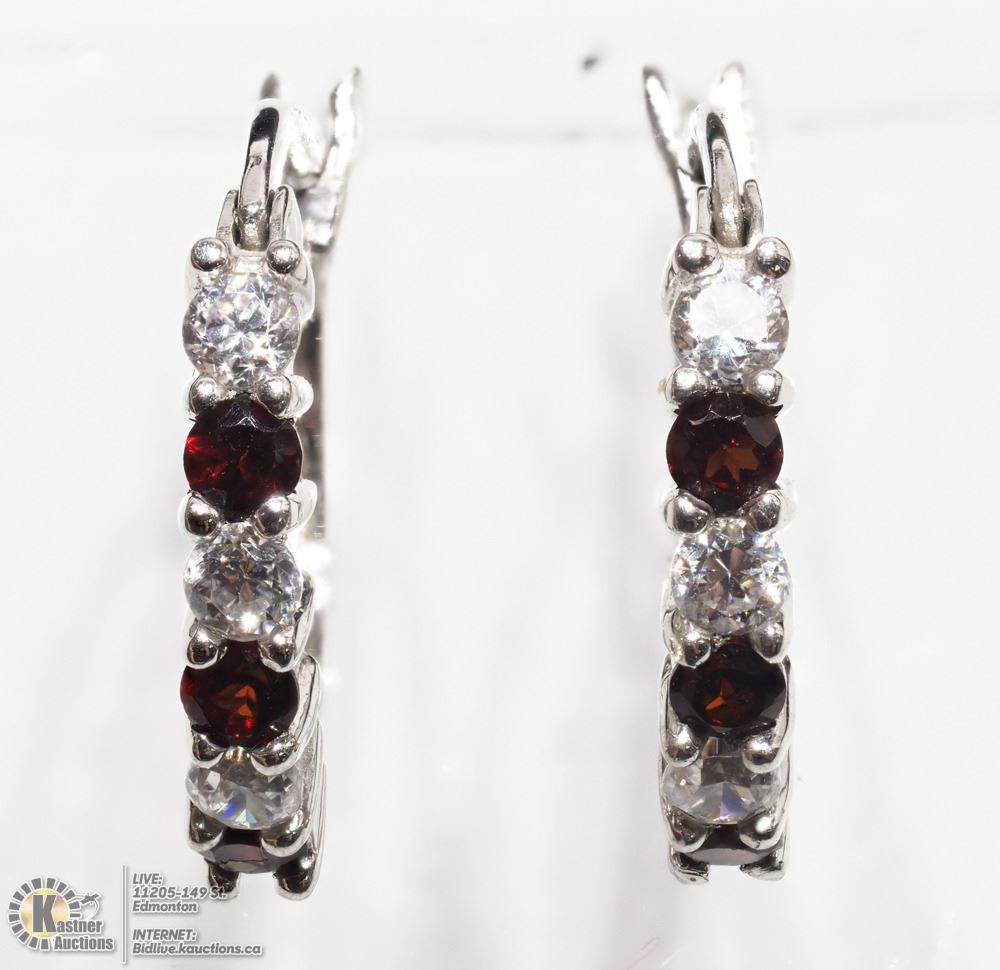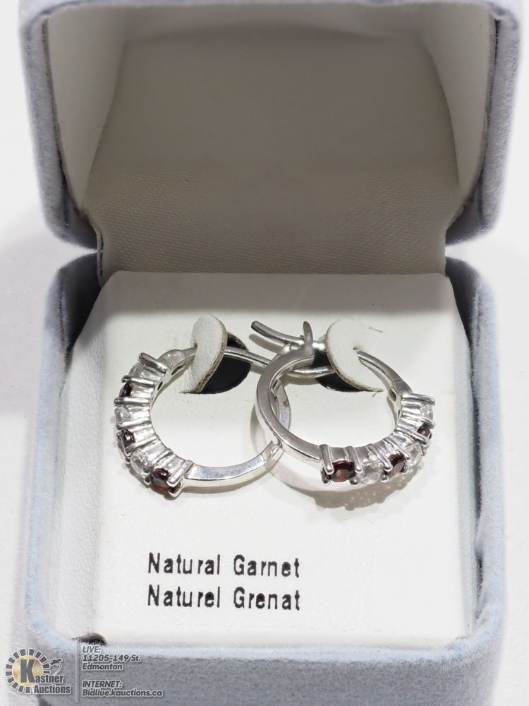 13-NT86- STERLING SILVER NATURAL GARNET (JANUARY BIRTHSTONE) EARRINGS. JEWELRY