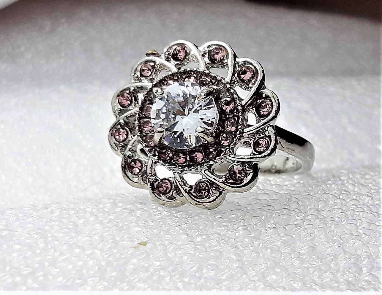 WHITE SAPPHIRES, FLOWER SHAPED, SIZE 7.75. JEWELLERY