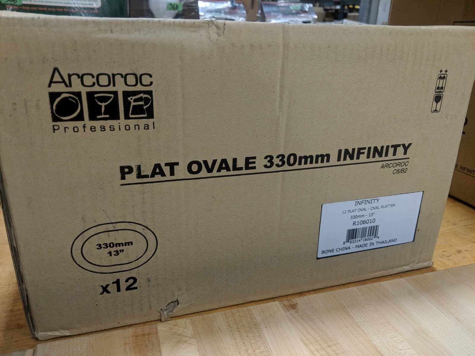 K283-J251 NEW 13" WHITE PORCELAIN OVAL PLATTERS, ARCOROC "INFINITY" R1060 - LOT OF 12