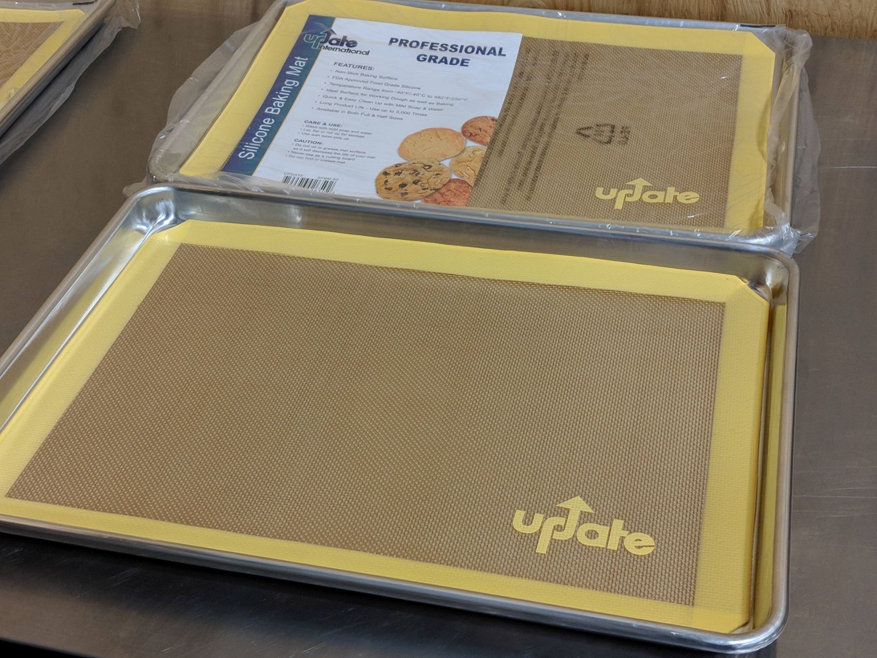KW1055 - NEW 13" X 18" HALF SIZE SHEET PANS WITH SILICONE MATS - LOT OF 2 (4 PIECES)