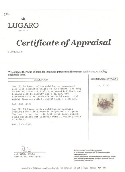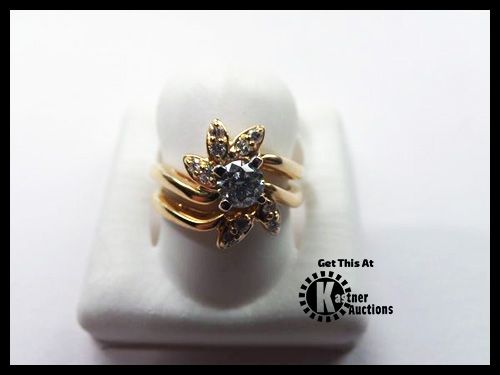 RING & 14K YELLOW GOLD MATCHING WEDDING BAND, ROUND BRILLIANT CUT DIAMOND, I1 CLARITY, H/I COLOR, APPRAISAL, RETAIL VALUE $1,750.00
