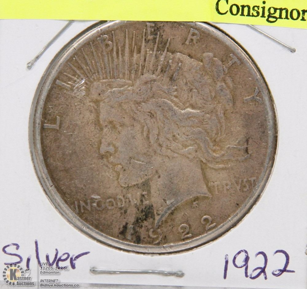 133) 1922 US PEACE SILVER DOLLAR CIRCULATED.