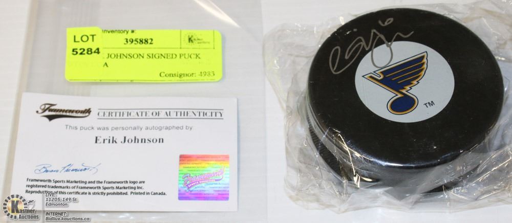 135) ERIK JOHNSON SIGNED PUCK WITH COA