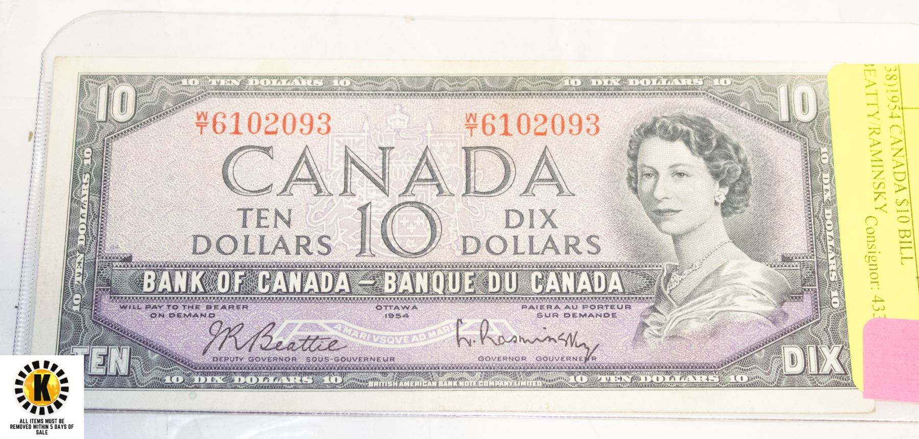 138)1954 CANADA $10 BILL BEATTY/RAMINSKY