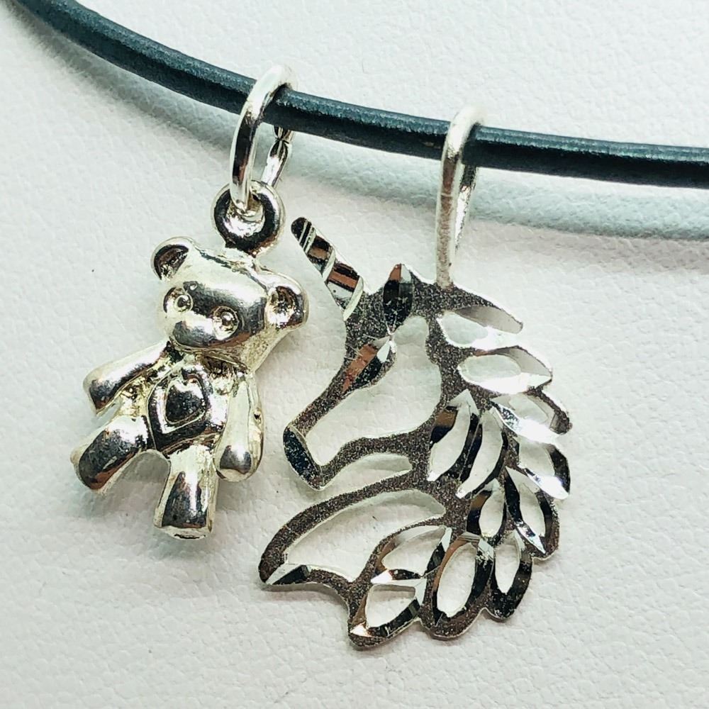 139 - JT60 - STERLING SILVER 2 PENDANTS WITH CORD NECKLACE (~WEIGHT 4G). JEWELRY